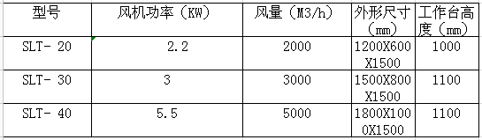 SLT系列集塵工作臺(tái) 該工作臺(tái)可以從源頭上捕集生產(chǎn)過(guò)程中產(chǎn)生的打磨粉塵,焊接以及等離子切割的煙霧。集塵工作臺(tái)配有粉塵過(guò)濾裝置、電氣控制系統(tǒng)并可選配動(dòng)力裝置,可使工件進(jìn)行水平或垂直方向的回轉(zhuǎn),以提高勞動(dòng)效率,并可為客戶要求提供專業(yè)的集塵工作平臺(tái)。現(xiàn)廣泛應(yīng)用于焊接、打磨和等離子切割,也可去毛刺,非金屬和金屬工件表面拋光、磨光。 SLT粉塵過(guò)濾裝置自帶式工作臺(tái)的特點(diǎn)是放置隨意,維修方便,生產(chǎn)工藝可進(jìn)行柔性編排。 SLT工作臺(tái)粉塵通過(guò)風(fēng)機(jī)產(chǎn)生的負(fù)壓經(jīng)正面排風(fēng)口和下排風(fēng)口進(jìn)入凈化器,氣流進(jìn)入導(dǎo)流通道,大顆粒粉塵與導(dǎo)流板碰撞后,大顆粒粉塵在重力的作用下落入集灰抽屜,含細(xì)小顆粒的粉塵進(jìn)入過(guò)濾室,含塵氣體由濾袋外表面穿過(guò)濾芯,粉塵則被濾芯阻攔在其表面,當(dāng)被阻攔的粉塵在濾芯表面不斷沉積時(shí),通過(guò)手動(dòng)清灰機(jī)結(jié)構(gòu)清掃濾芯,也可通過(guò)脈沖噴吹對(duì)濾筒清灰使得沉積在濾芯上的粉塵顆粒在振動(dòng)的作用下脫離濾芯表面落入集灰抽屜中,使得整個(gè)濾芯表面都得到清掃,凈化后的潔凈空氣由風(fēng)道、經(jīng)風(fēng)機(jī)排出。獨(dú)特的臺(tái)式設(shè)計(jì),并配有工作燈、打磨機(jī)電源插孔、夾具安裝孔,兩側(cè)板可隨時(shí)打開(kāi),方便較大工件使用。