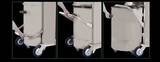 ⑤工業(yè)用吸塵器大容量集塵桶,收集效率高,快卸式分離式集塵桶,倒塵方便快捷。過(guò)濾桶與集灰桶,上下桶分離, 快卸結(jié)構(gòu)是本機(jī)標(biāo)準(zhǔn)配置,給使用者帶來(lái)最大的便利就是清灰方便,當(dāng)需要清理灰塵時(shí),只需要將壓桿上提,集塵桶自然下落至地面,拖動(dòng)自帶腳輪集塵桶傾倒灰塵,完成后壓下壓桿即可。